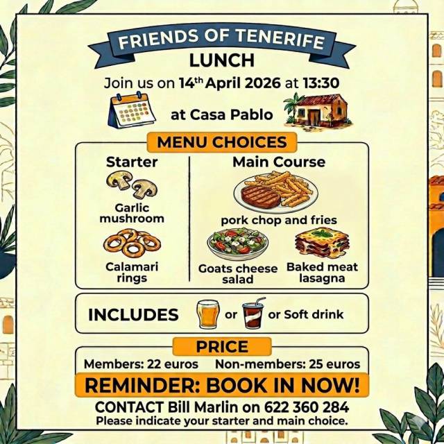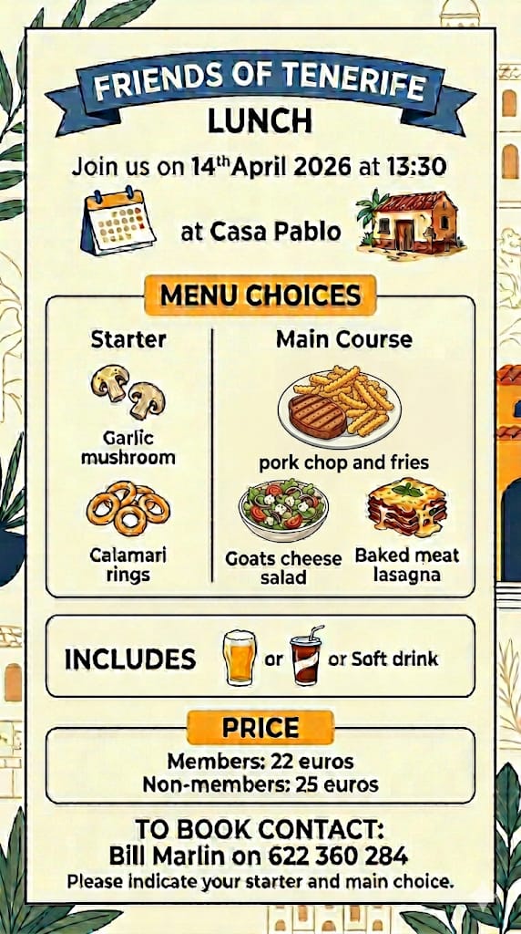 or by Email to sec.friendsoftenerife@outlook.com